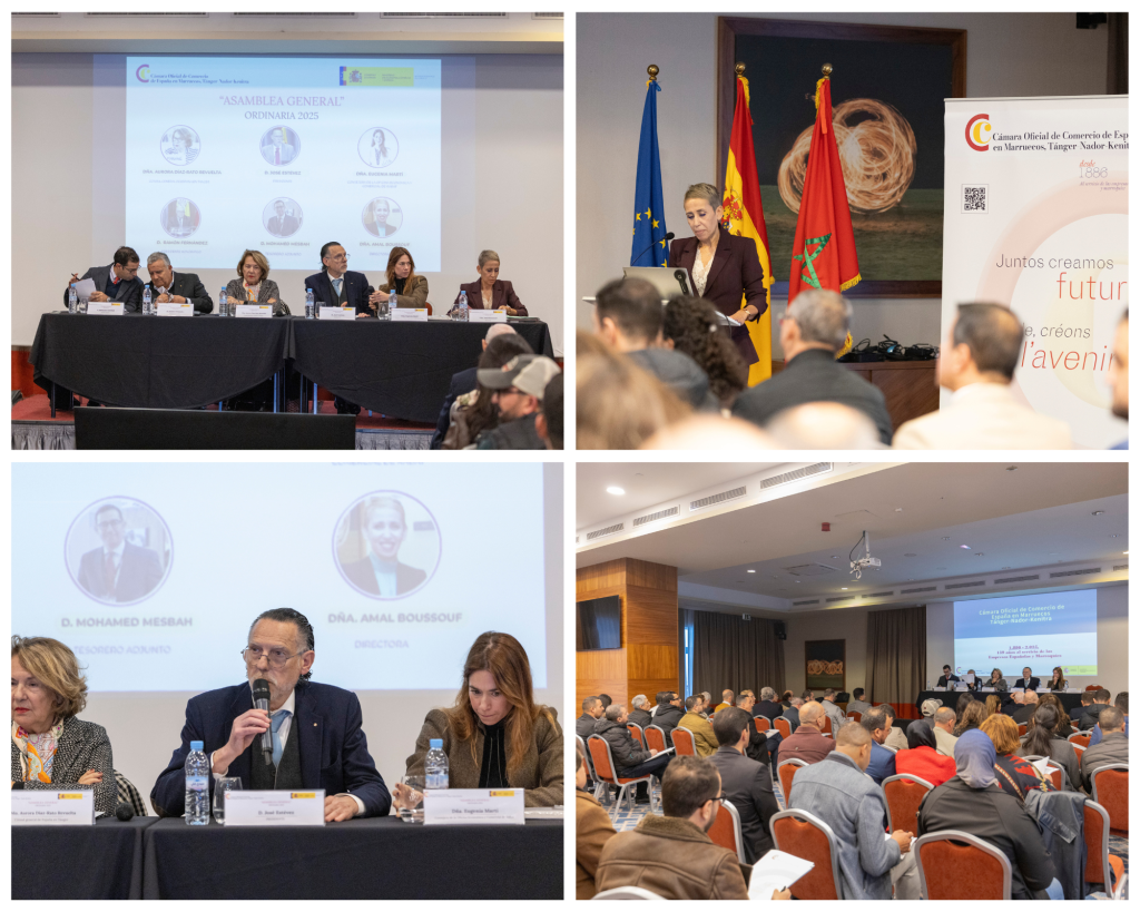 12 enero 2026Reuniendo a sus socios en torno a las principales orientaciones del año y a las perspectivas futuras, la Cámara Oficial de Comercio de España en Marruecos – Tánger, Nador, Kenitra celebró su Asamblea General Ordinaria el martes pasado 16 de diciembre de 2025 a las 17h00, en el Hotel Hilton Garden Inn de Tánger.