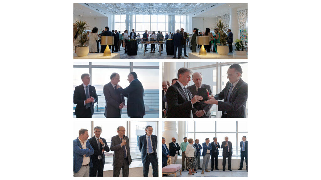 Este acontecimiento marcó la salida del Sr. Fernández tras cinco años de mandato en Marruecos. En esta ocasión, el Sr. José Estévez Martínez, Presidente de la CECIT, entregó la insignia de nuestra institución al Sr. Fernández Méndez de Andés en reconocimiento a su dedicación y compromiso. Su trabajo ha reforzado significativamente los vínculos económicos entre España y Marruecos.