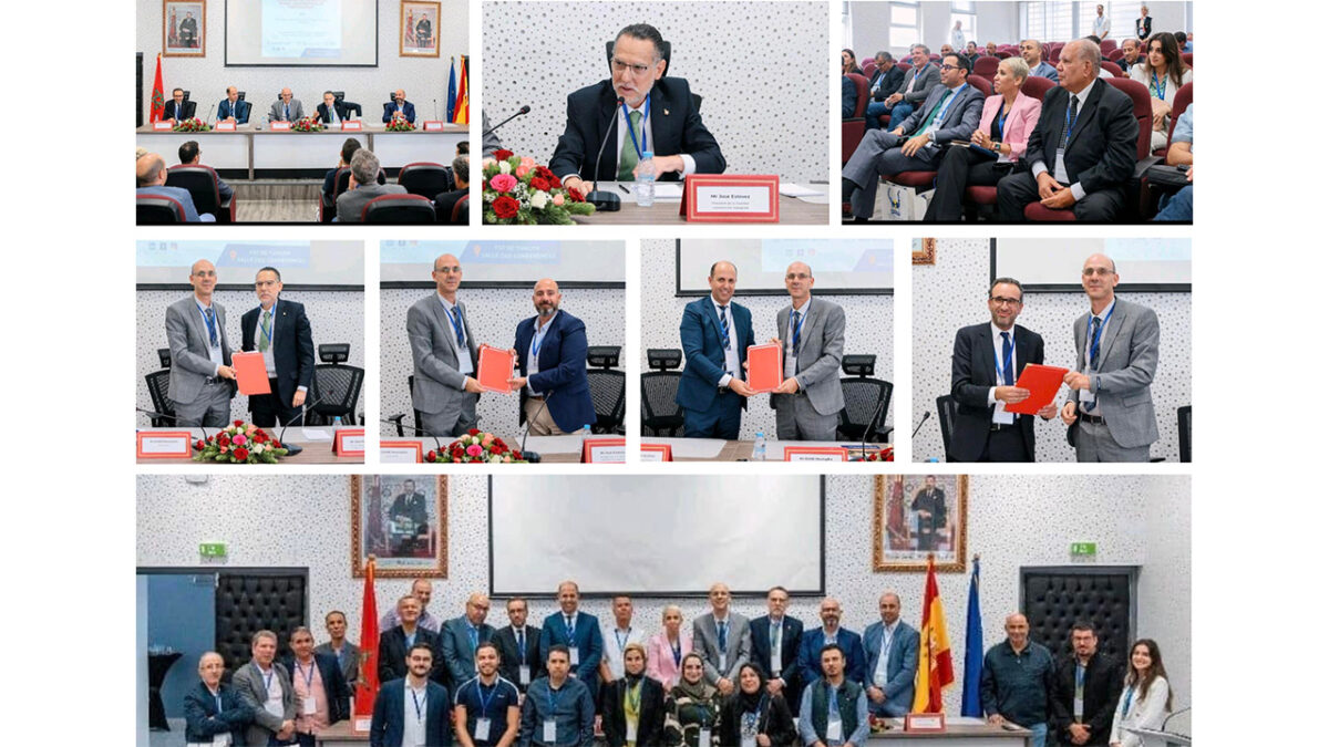 Dentro de una lógica de cooperación y de búsqueda de complementariedad en la acción, la ceremonia estuvo marcada por testimonios y firmas de convenios con socios de la CECIT, específicamente la empresa INCOM COMPOSITES MOROCCO, representada por su director, el Sr. Juan Antonio Vidal, ELECTRICAL COMPONENTS INTERNATIONAL (ECI), representada por su Director General, Sr. El Oualanti Brahim, y la empresa STANDARD PROFIL, representada por el Sr. Mohamed Ali Amrani. Moderadora, Sra. Siham Chtouki, responsable de la Célula de Comunicación FST.