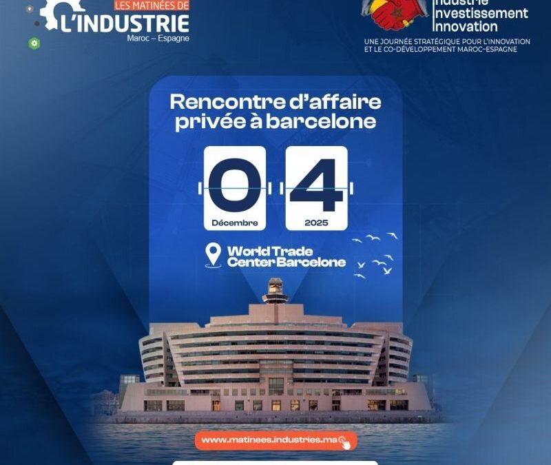 Le 4 décembre, entreprises et institutions des deux rives se retrouvent au WTC Barcelone pour une journée dédiée aux partenariats, au B2B et au développement industriel Maroc–Espagne.